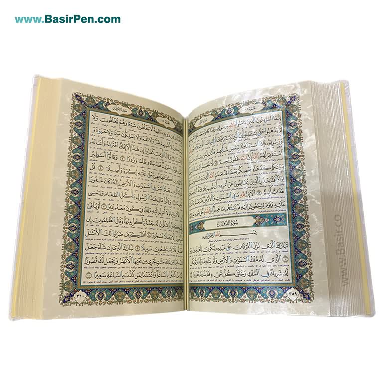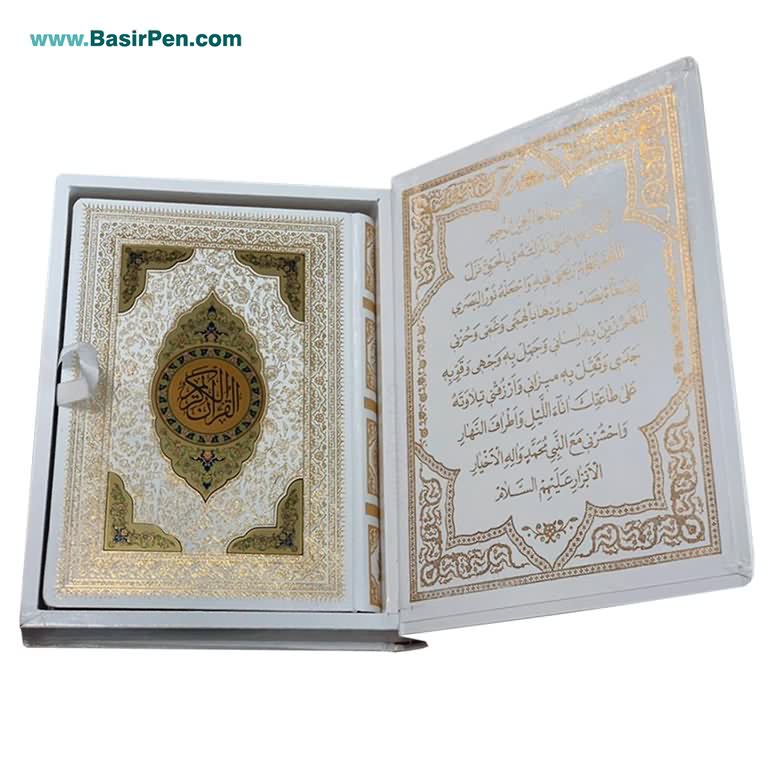 کتاب قرآن نفیس کاغذ گلاسه بصیر (قرآن عروس) بسیار زیبا با طرح و کیفیتی فوقالعاده در قطع وزیری با کاغذ گلاسه لبه طلایی اصل و جلد و قاب بازشو سفید رنگ تلفیق برش لیزر همراه با پلاک طلایی آینه ای و طلاکوب با کیفیت بسیار عالی و تقاضای بالا ...هدیه ای بسیار مناسب برای تمامی افراد و جشن های عقد و ... جدیدترین کارتولید شده توسط موسسه فرهنگی بصیرتخفیف و شرایط بسیار ویژه برای تمامی خریداران در تعداد بالا.