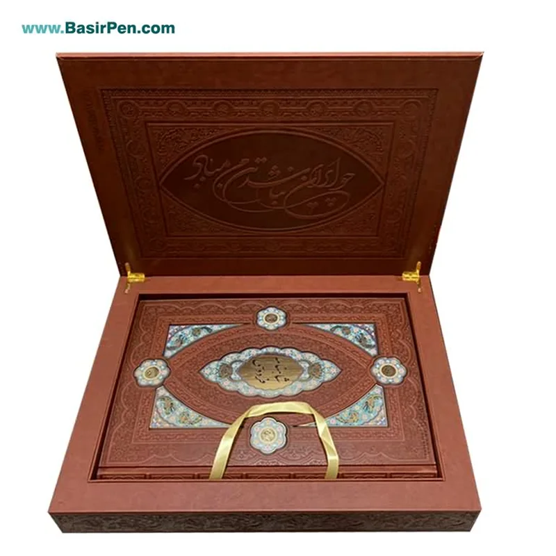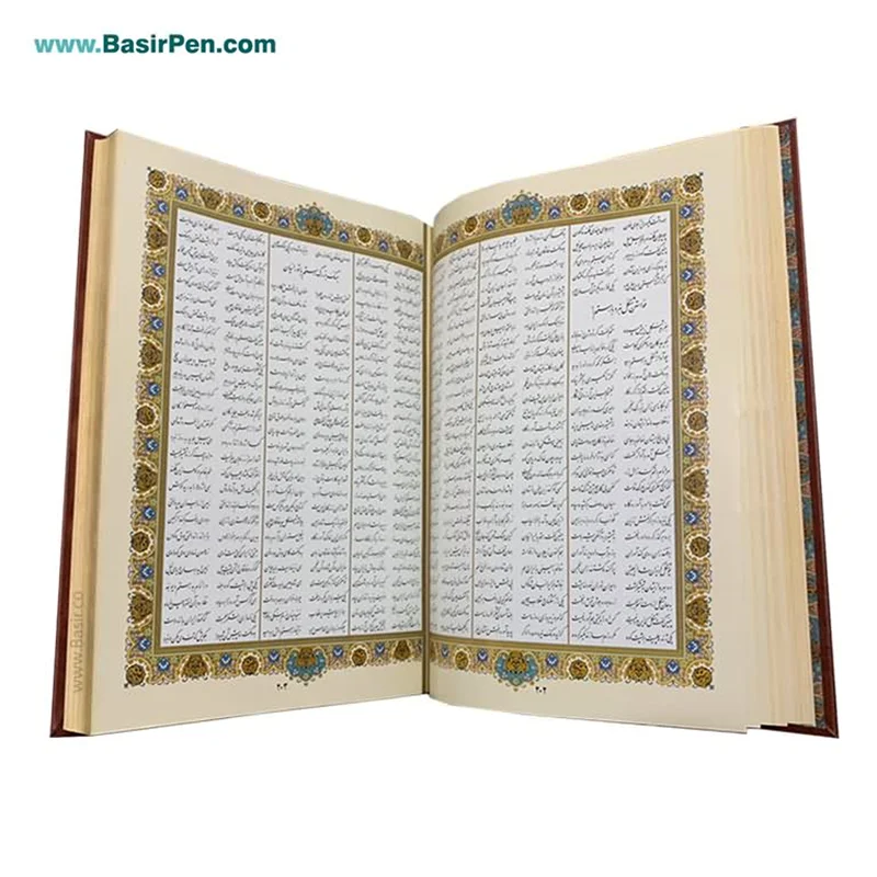 کتاب نفیس شاهنامه رنگی همراه با جعبه نفیس دارای پلاک رنگی بر روی جلد و قاب (جعبه)کاغذ گلاسه با چاپ کاملا رنگی در اندازه بزرگ سلطانی