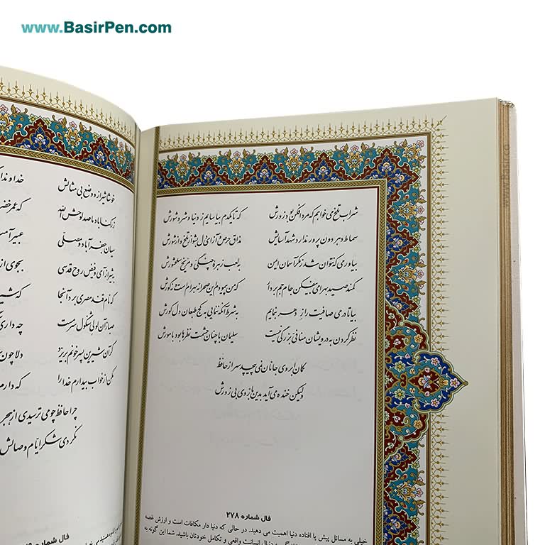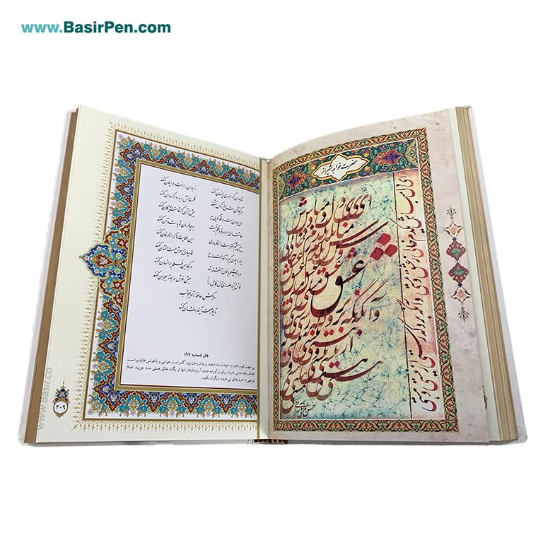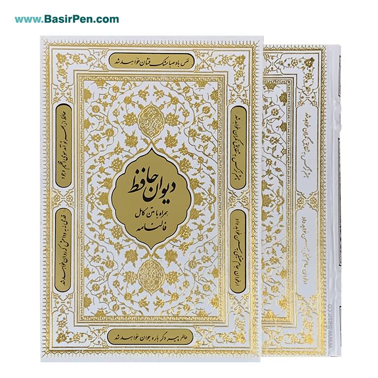 کتاب نفیس دیوان حافظ شیرازی سفید بسیار زیباهمراه با قاب کشویی گالینگور سفید پلاک دارقطع وزیری با کیفیت عالی کاغذ گلاسه چاپ کاملا رنگی با تذهیب بسیار زیباخط استاد محمد مهدی منصوری تولید و توزیع به صورت عمده توسط موسسه فرهنگی بصیر