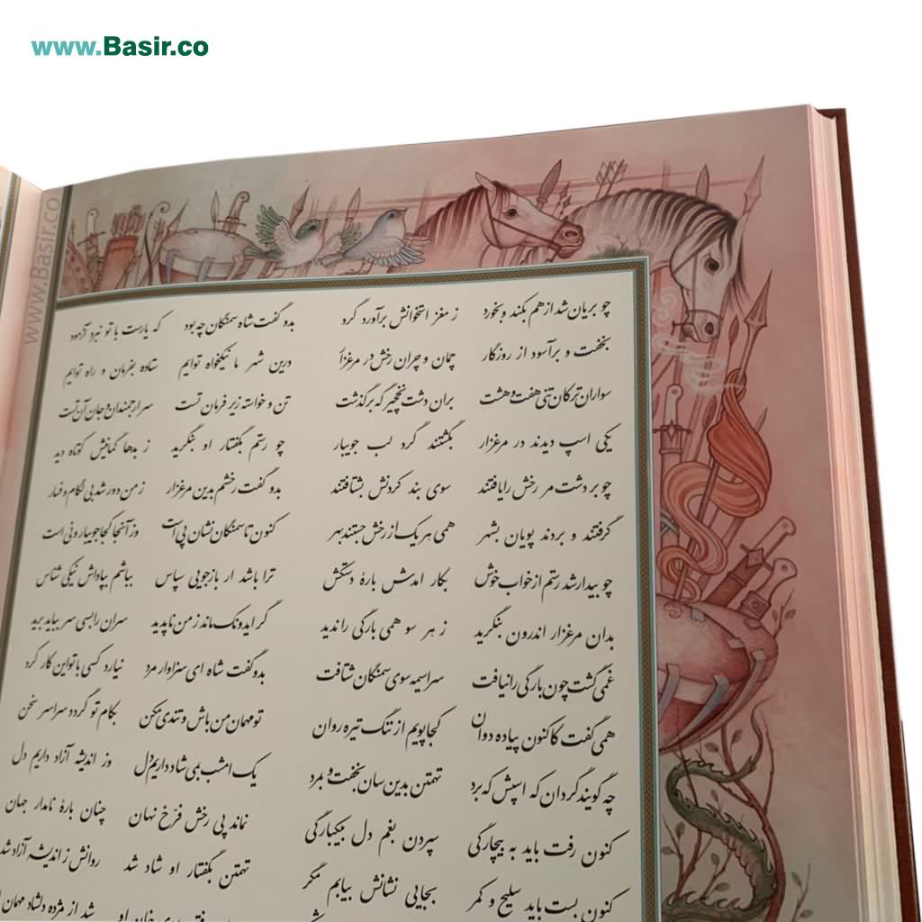 کتاب نفیس شاهنامه چرمی طرح مس بسیار زیبا و نفیس همراه با قاب کشویی کاغذ گلاسه با چاپ کاملا رنگی و تذهیب زیبا