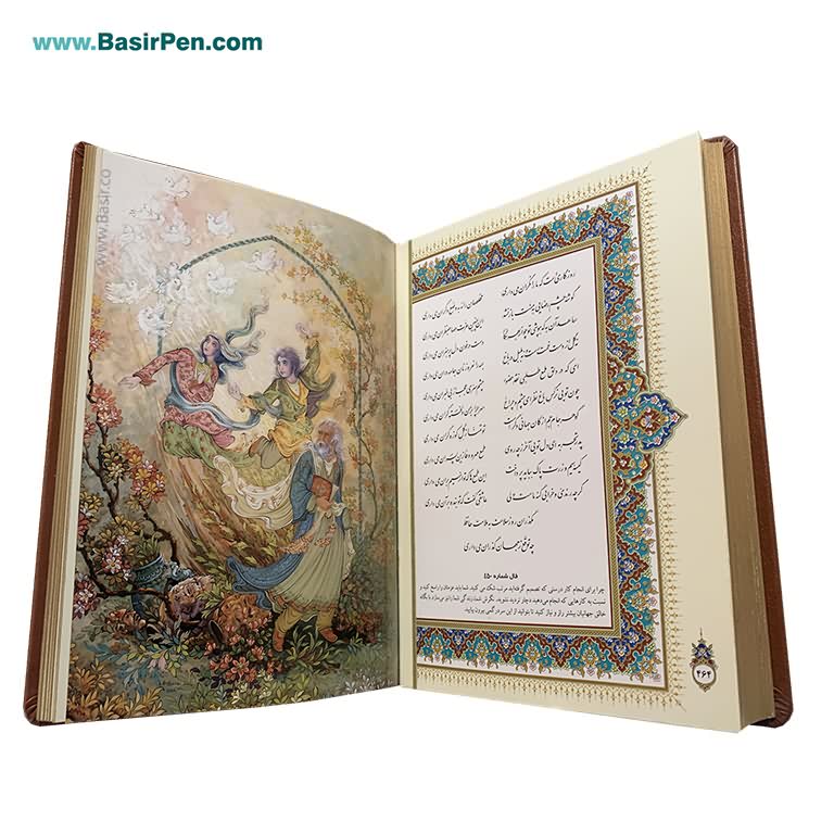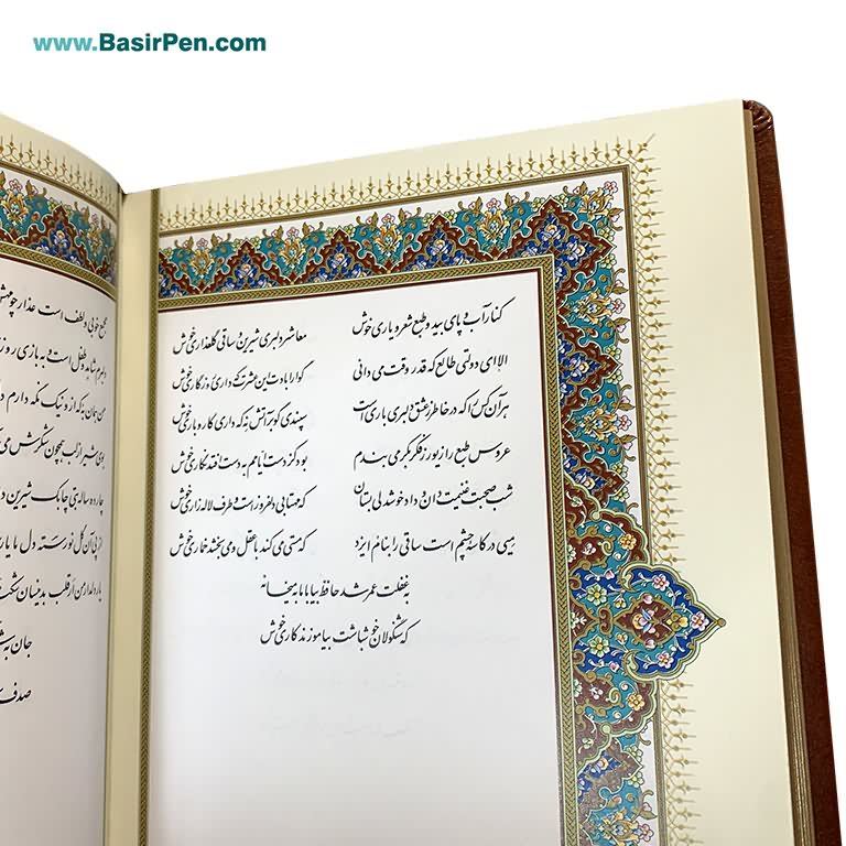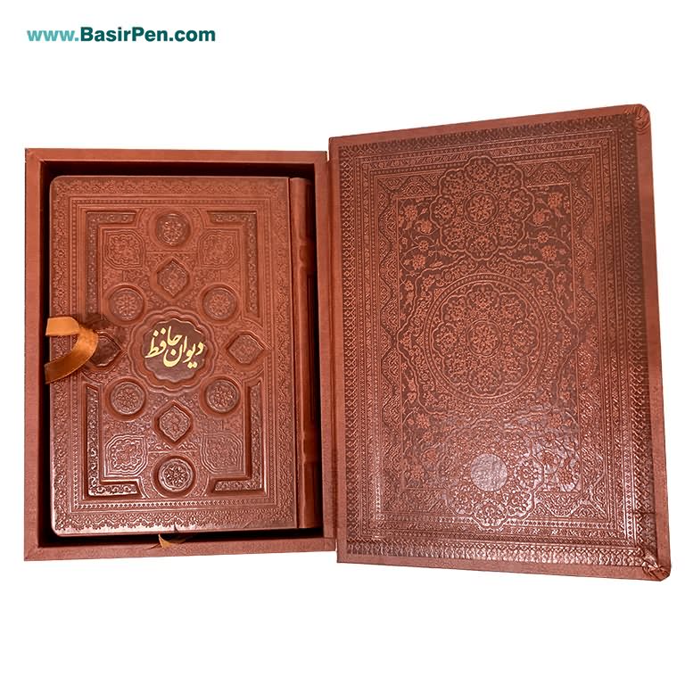 کتاب بسیار زیبا و نفیس دیوان حافظ چرمی بصیر همراه با جعبه (قاب بازشو) طرح برجسته با کیفیت عالی و کاغذ گلاسه و چاپ تمام رنگی بسیار زیبا این کتاب به صورت تک و یا در تعداد بالا با تخفیف های بسیار عالی و بهترین قیمت توسط این مرکز (انتشارات نوین بصیر) توزیع می گردد.