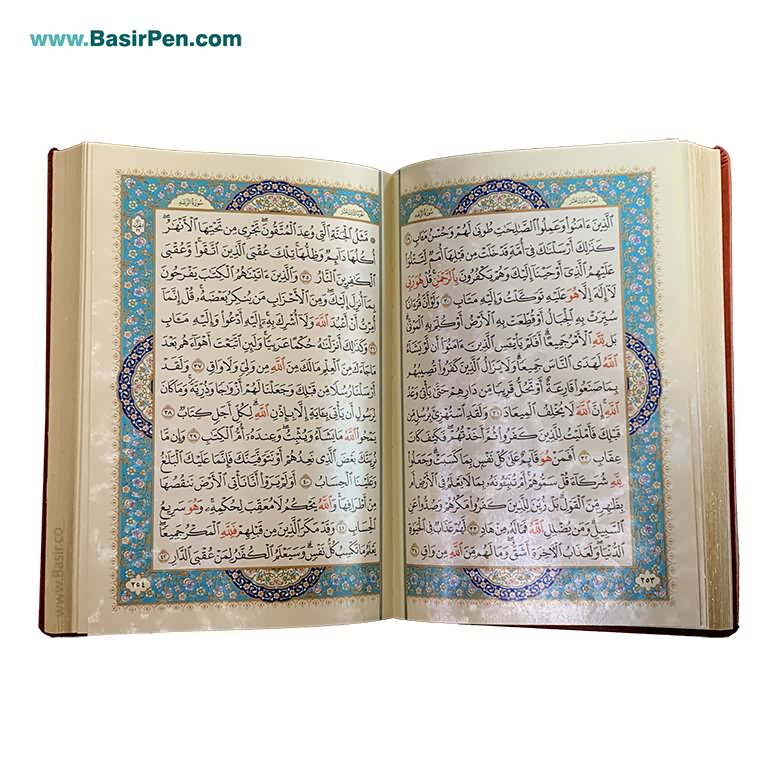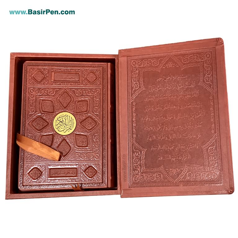 کتاب قرآن نفیس و معطر بصیر همراه با قاب بازشو (جعبه صندوقی) با جلد و قاب چرمی طرح برجسته بسیار زیبا همراه با پلاک طلایی و چاپ کاملا رنگی با تذهیب چشم نواز و زیبا بر روی بهترین کاغذ معطر (مارگانو) طرح ابر و باد لبه طلا با کیفیت عالی، توسط انتشارات نوین بصیر به صورت عمده تولید گردیده و در داخل و خارج از کشور مورد استقبال هموطنان عزیز قرار گرفته است.محصولات نفیس بصیر با بهترین قیمت و تخفیف های عالی به صورت تکی و یا در تعداد با تخفیف پله ای توزیع می گردد.جهت اطلاعات بیشتر با شماره های موسسه تماس بگیرید.تلفن: 66413676