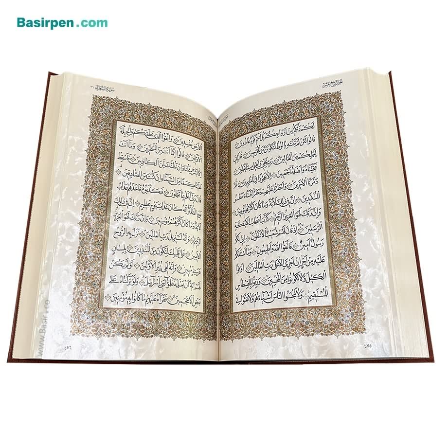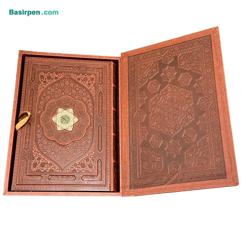 کتاب قرآن نفیس و معطر جلد چرمی همراه با قاب بازشو قطع رحلی